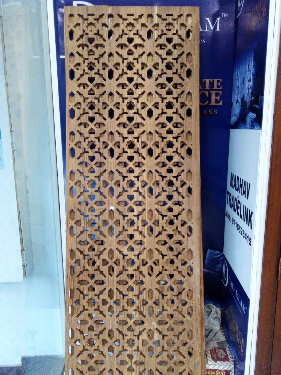Kashimiri Design Wooden Work On Teak Wood Jaali for Roshandan. Best Class CNC cut Perforated Zaali work on Teak Wood Doors and Windows manufacturing by Madhav Trade Link by Trade mark "Vigaz".